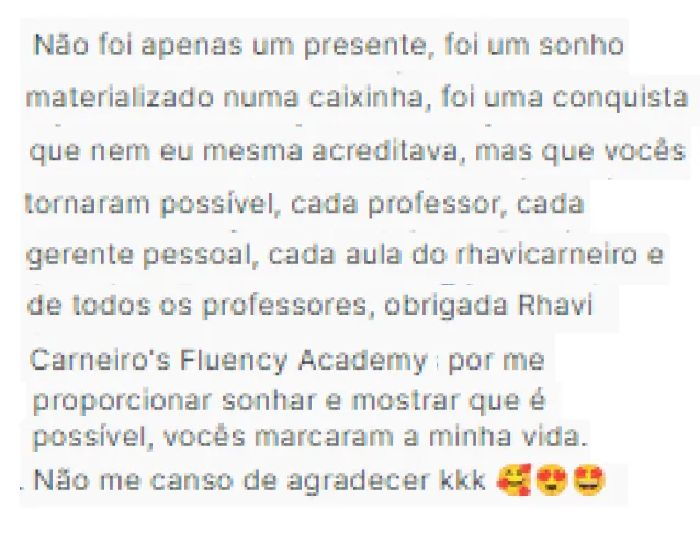 A Cinthia se sentia muito frustrada porque não conseguia aprender inglês. Depois da Fluency, ela consegue falar com nativos e assistir filmes e séries sem legenda.